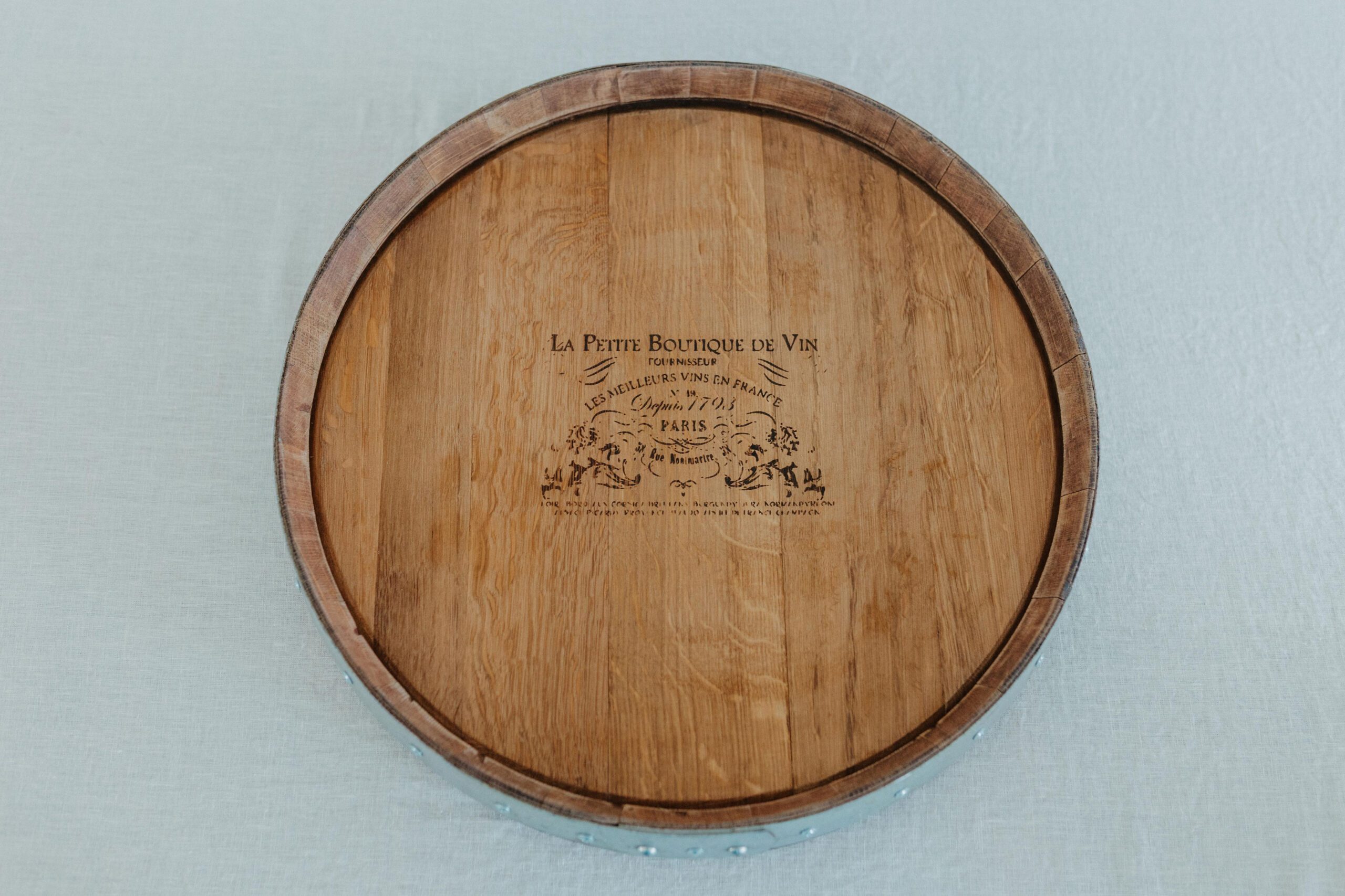 Crafted from an authentic reclaimed wine barrel head, this Riser blends rustic charm with modern design. Each board showcases the natural grain, cooperage marks, and winery character unique to the original barrel. Each riser features unique cooperage or replicated winery stamps, ensuring no two pieces are alike.